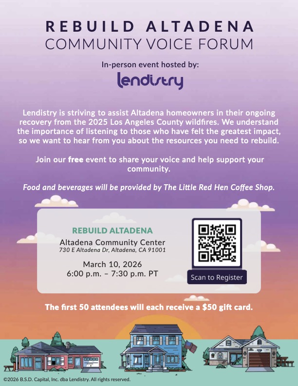 | 3/16/2026 | Online, hosted by Supervisor Kathryn Barger |