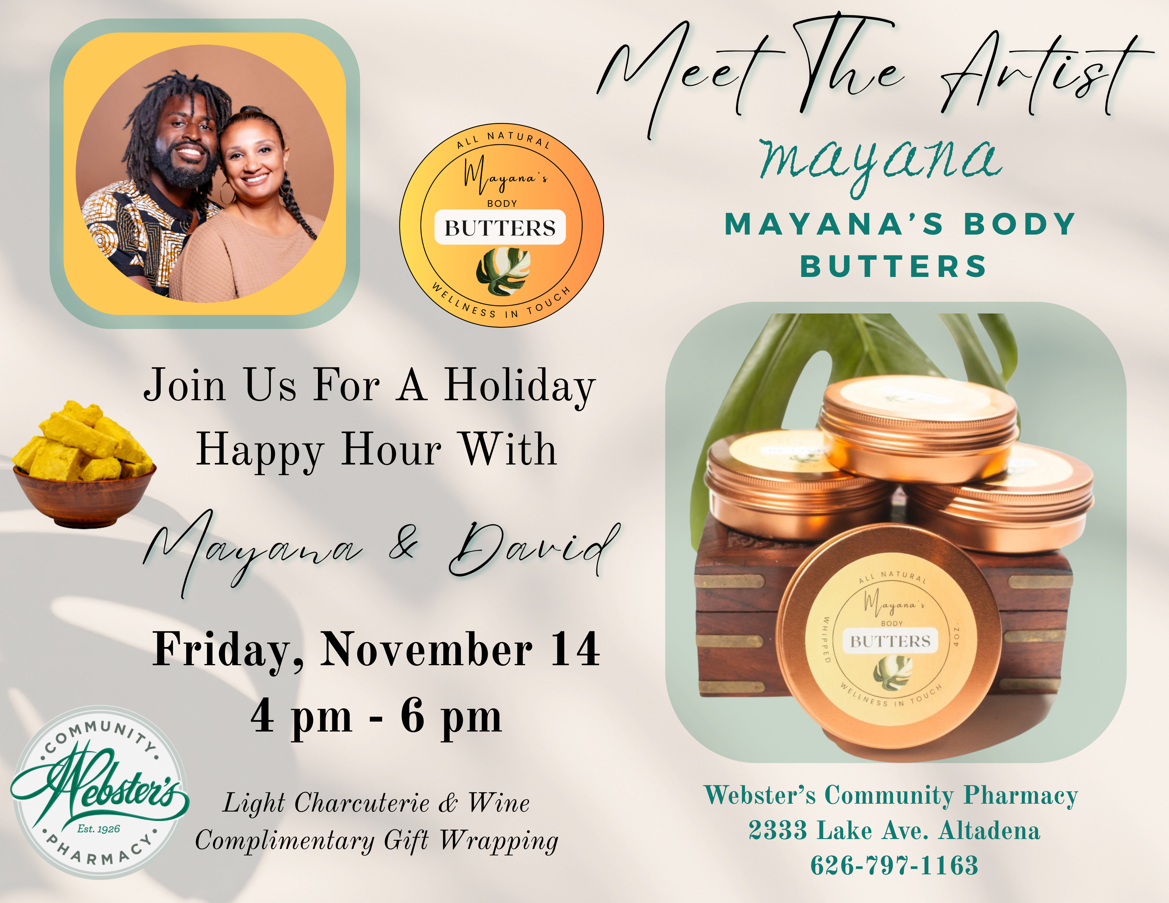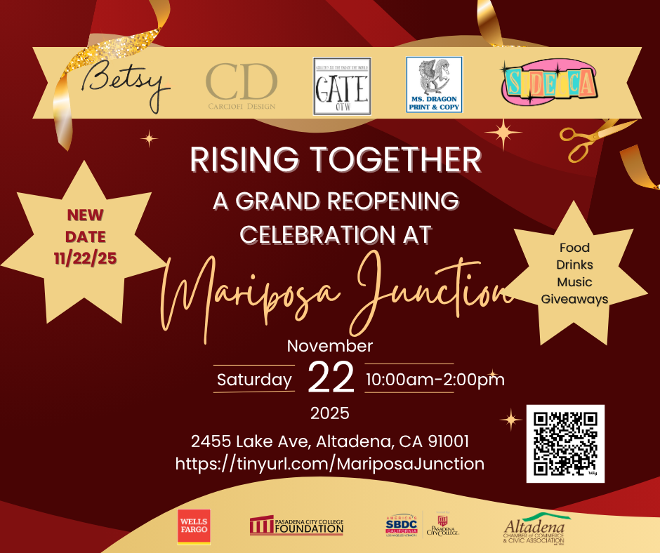 | 11/29/2025 -11/30/2025 | Our curated holiday market features over 50+ vendors, showcasing the incredible talent of local Altadena artisans alongside other exceptional makers from our region. Find unique jewelry, ceramics, textiles, art, and gourmet foods while supporting small businesses and the creative spirit of our community. more info... |
