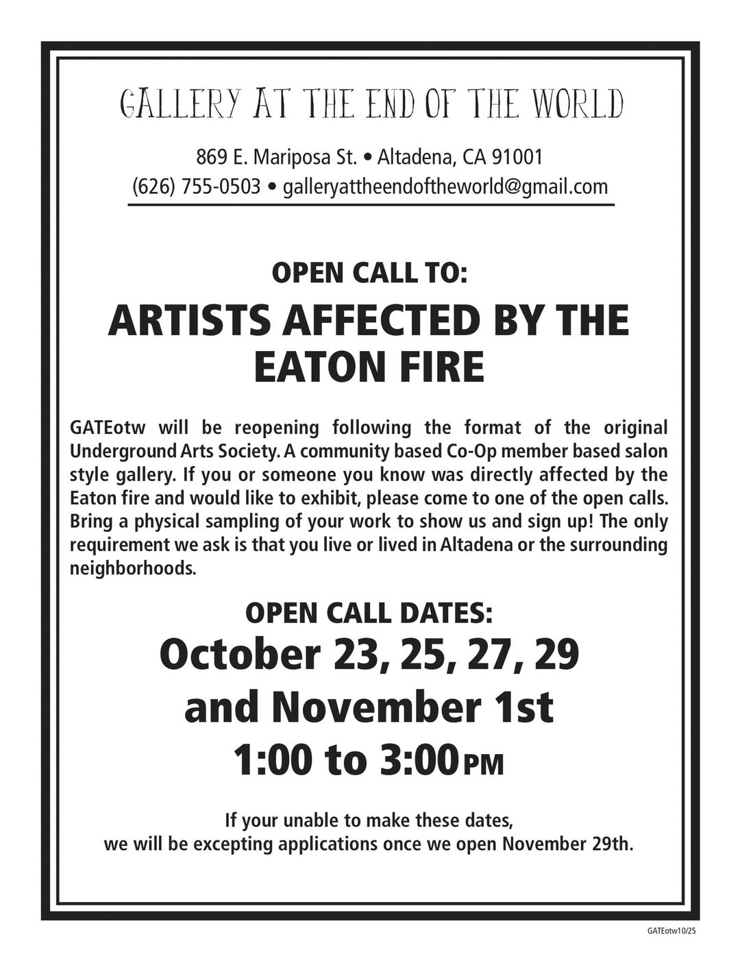 | 11/15/2025 | last saturday was special. this saturday will be bad ass. our friend and long time customers started @not_ev_altadena to document and tell the story of people affected by the fire through their lost cars. the community grew. last weekend they had their inaugural meetup at unincorporated called @altadenacarsandcoffee. it was special. and it’s happening again. this saturday and the saturdays to follow! see you all there. altadena cars & coffee hosted by : the people of altadena and @not_ev_altadena at : unincorporated coffee roasters, altadena 3045 lincoln ave. 8am more info... |