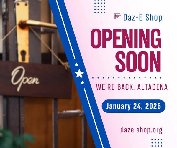 | 1/24/2026 | January 24 at 10:30 a.m. is the grand re-opening of the Daz-E Shop, a nonprofit thrift store located at 2525 N Lake Ave and dedicated to funding scholarships for Southern California women. The grand reopening celebration will include remarks from local leaders, community partners, and scholarship representatives. more info... |