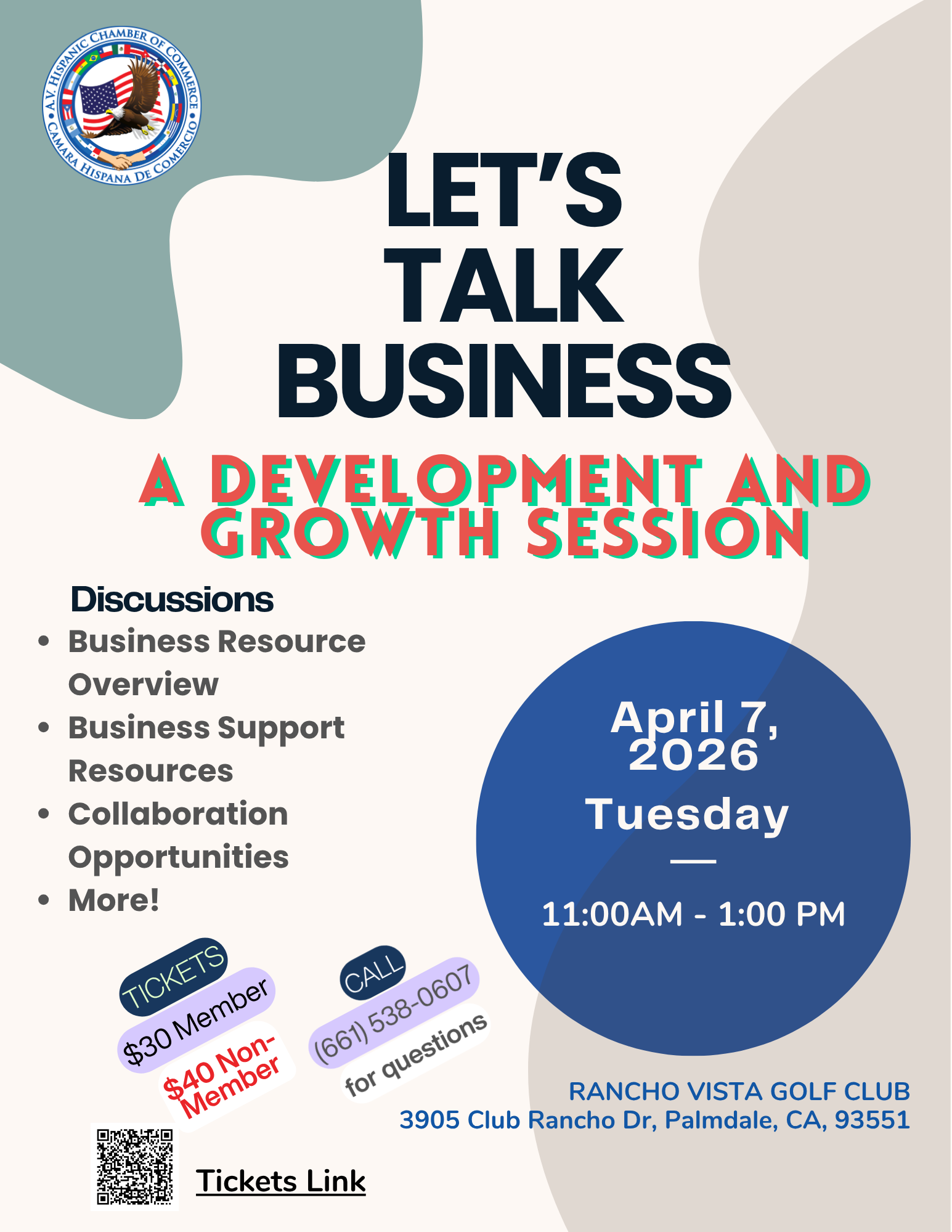 | 4/7/2026 | Let's Talk Business: Development and Growth Session Join us for an engaging and informative Monthly Chamber Luncheon designed to connect, inform, and support our local business community. “Let’s Talk Business: A Development and Growth Session” brings together professionals, entrepreneurs, and community partners for meaningful conversation and practical insights. What We’ll Cover: