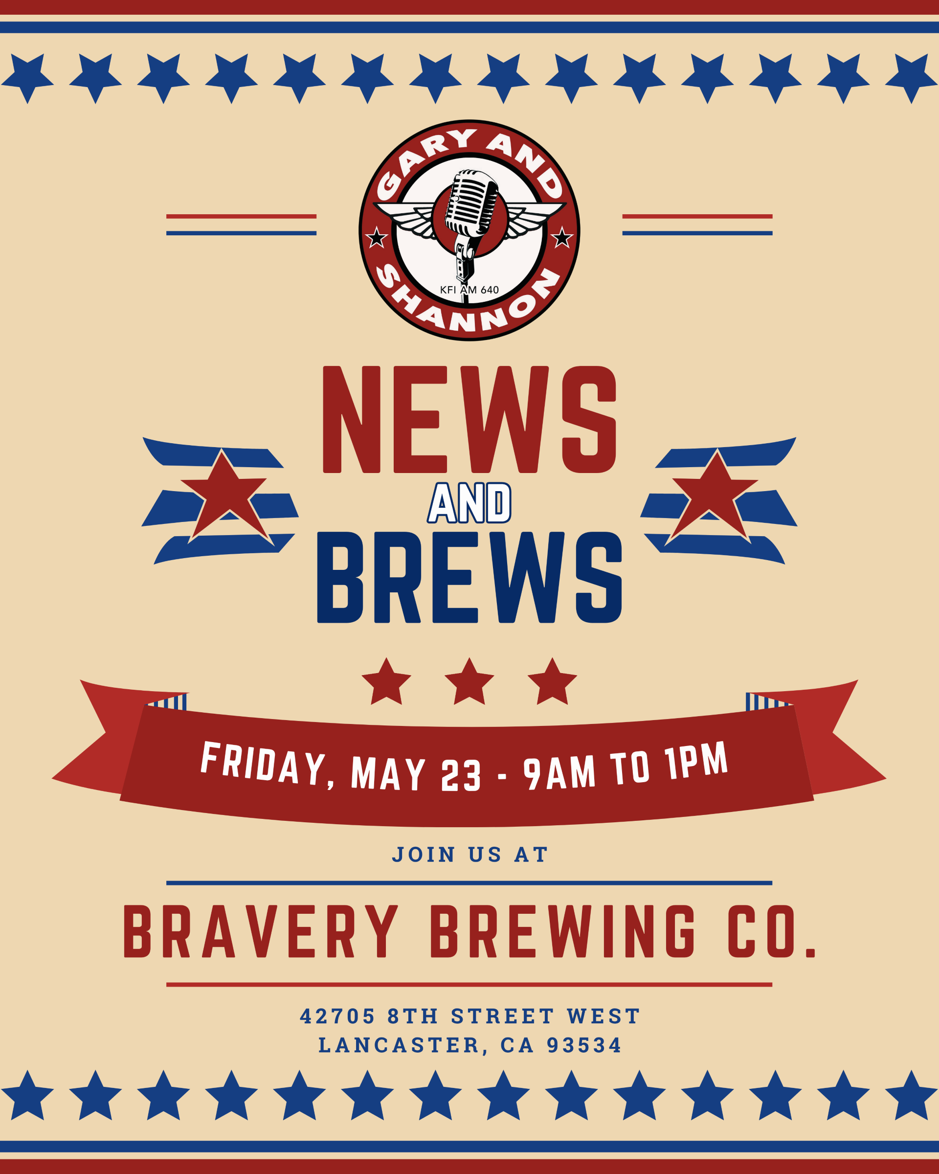 AT BRAVERY BREWING COMPANY HOSTED BY GARY & SHANNON OF KFI AM 640 ALL AGES WELCOME !! NO CHARGE KICK OFF MEMORIAL DAY WEEKEND COME JOIN THE FUN !! AWARD WINNING PIZZA & NEWLY RELEASED KFI-PA BEER more info... |