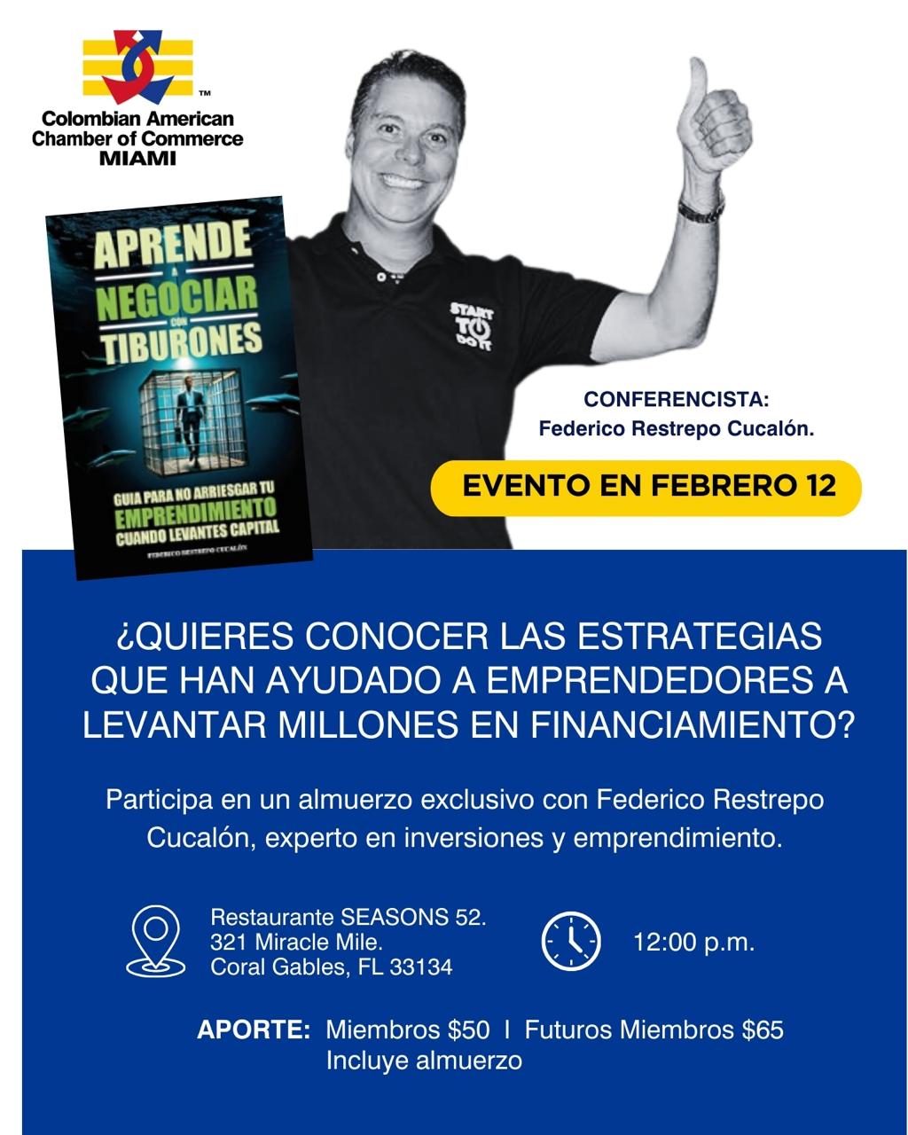 📢 INVITACIÓN ESPECIAL AL LANZAMIENTO DEL LIBRO "APRENDE A NEGOCIAR CON TIBURONES" 📢 Un evento exclusivo con el autor y experto en inversión y emprendimiento, Federico Restrepo Cucalón 🦈 ¿Quieres aprender a negociar como un verdadero tiburón y cerrar inversiones con éxito? 🦈 ¿Te gustaría descubrir las estrategias que han ayudado a emprendedores a levantar millones en financiamiento? 🦈 ¿Quieres evitar los errores que pueden costarte tu empresa en una negociación? Un evento donde descubrirás las estrategias más efectivas para levantar capital, atraer inversionistas y cerrar acuerdos con éxito. 📅 Fecha: Febrero 12, 2025 📍 Lugar: Restaurante Season 52. 321 Miracle Mile. Coral Gables, FL 33134 ⏰ Hora: 12:00 p.m. 🎤 Conferencista: Federico Restrepo Cucalón. Autor del libro y experto en emprendimiento e inversión. ✅ Fundador de más de 25 compañías en distintos sectores. ✅ Ha recaudado más de 100 millones de dólares en inversión. ✅ Inversionista ángel con participación en múltiples startups exitosas. ✅ Mentor y jurado en competiciones de emprendimiento a nivel internacional. ✅ Escritor de “Emprende y deja huella :50 secretos para emprendedores basados en experiencia” 📌 ¿Qué aprenderás en esta conferencia? Cómo atraer inversionistas sin comprometer el futuro de tu empresa. Claves para estructurar un pitch efectivo y cerrar inversiones. Quiénes son los "tiburones" del mercado y cómo negociar con ellos. Errores fatales en rondas de inversión y cómo evitarlos. Estrategias prácticas para proteger tu negocio y hacerlo crecer. Este evento es una oportunidad única para aprender de la experiencia real de un empresario e inversionista que ha negociado con fondos de inversión de talla mundial. ¡Sorpresa especial! Entre los asistentes rifaremos 5 ejemplares autografiados del libro "Aprende a negociar con tiburones". 🎟️ Cupos limitados. Reserva tu asistencia ahora. ¡Nos vemos en el lanzamiento y prepárate para negociar como un verdadero tiburón! 🦈 more info... |
