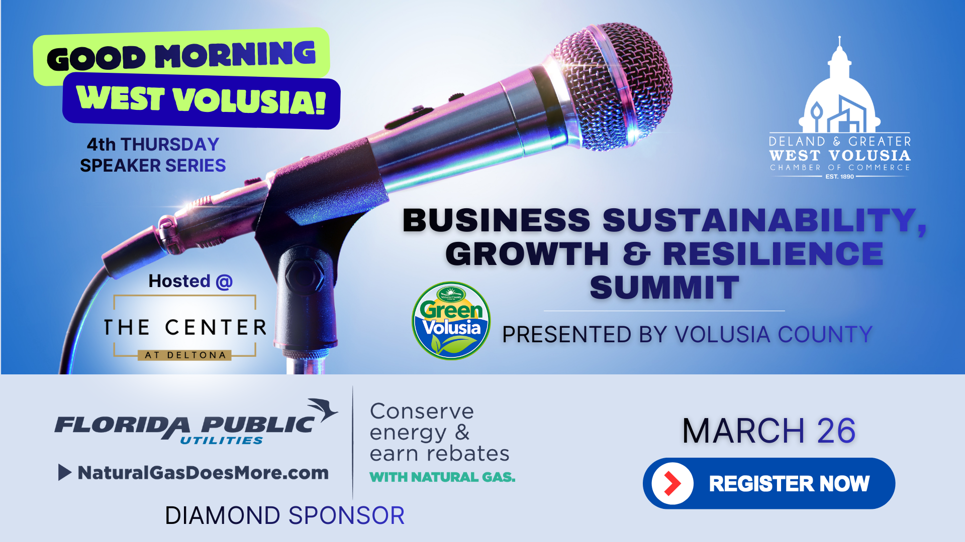| 3/26/2026 | Is your business ready to thrive in tomorrow’s world? This high-energy summit brings strategies, tools, and expert guidance from Volusia County leaders to help you build a stronger, smarter, and more resilient business. Walk away with actionable insights you can put to work immediately. DATE: Thursday, March 26, 2026 TIME: Check-in & Coffee: 8:30-9:00 am Program: 9:00-10:00 am EVENT LOCATION: The Center at Deltona – 1640 Dr. M.L.K. Blvd, Deltona ATTIRE: Business dress TICKETS: Chamber Members – Free Admission Non-Members – $10 If you are a Chamber member and do not see the member registration option, please email rsvp@delandchamber.org for assistance. Complimentary Member Reservation Policy Complimentary seats are provided as a member benefit, and event preparations—including meal orders—are finalized based on your reservation. If you are unable to attend, you are required to cancel your reservation at least 24 hours in advance so your seat may be released to another member and unnecessary costs avoided. Failure to cancel within the required timeframe and resulting in a no-show will incur a $10 no-show fee, which will be invoiced to help offset event expenses. We appreciate your cooperation and adherence to this policy to ensure fairness and responsible planning for all members. more info... |