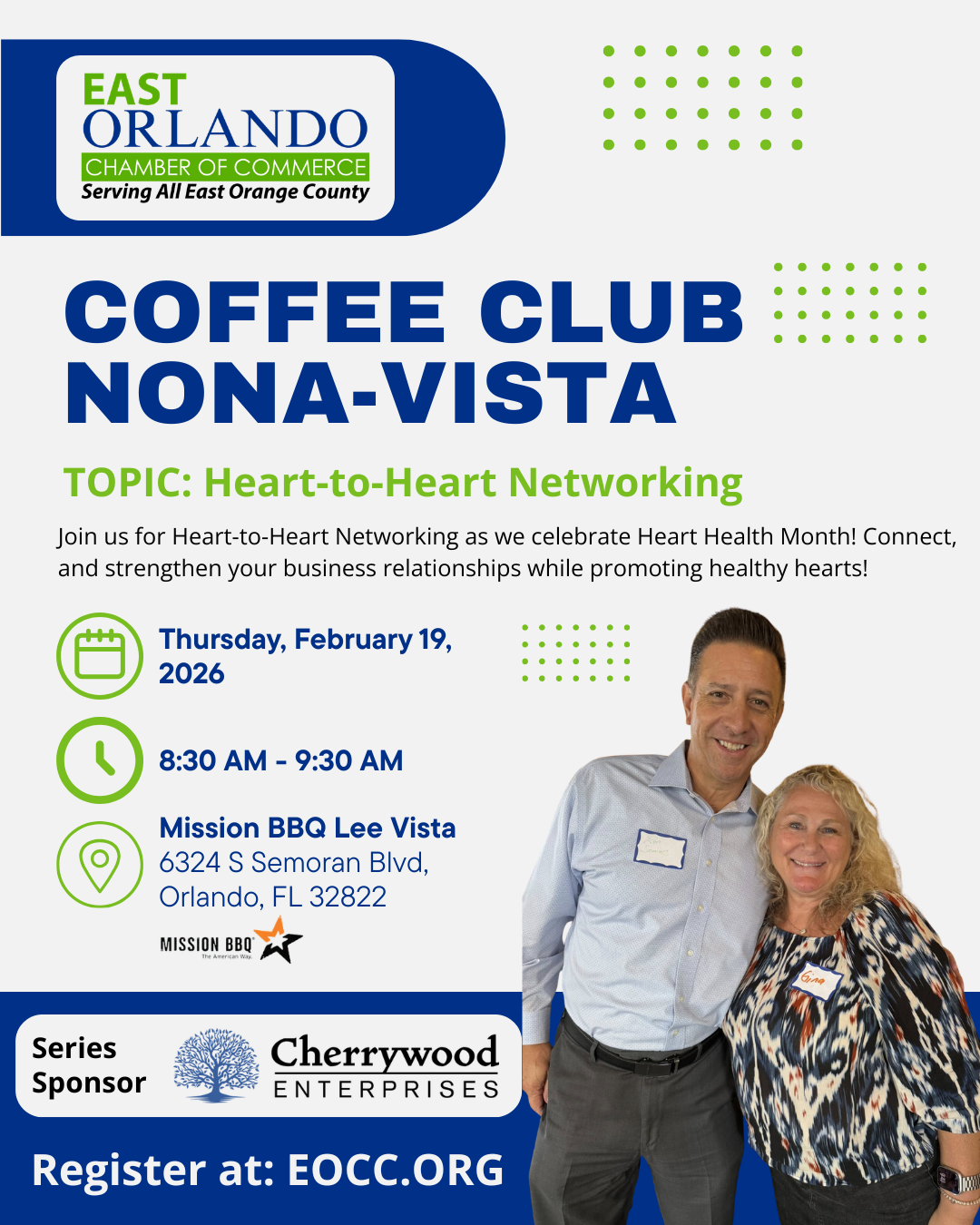 | 2/10/2026 | MEMBER ORIENTATION BREAKFAST 2nd Tuesday Bi-Monthly 8:30 AM to 10:30 AM Location: East Orlando Chamber of Commerce, 12301 Lake Underhill Road, Orlando, FL, 32828 For new & current EOCC Members RSVP Requested ***February, April, June, August, October and December*** π Rise and shine, EOCC members! π Join us for our Member Orientation Breakfast where we'll kick off the day with a fun networking activity that'll get the buzz going! Get ready to dive into an electrifying program filled with mind-blowing insights and the added value your membership brings. π Hold onto your hats—this morning is going to be energizing! Can’t wait to see you there! π₯ Series Member Orientation Spotlight Table Sponsor more info... | ||||||||||||||||||||||||||