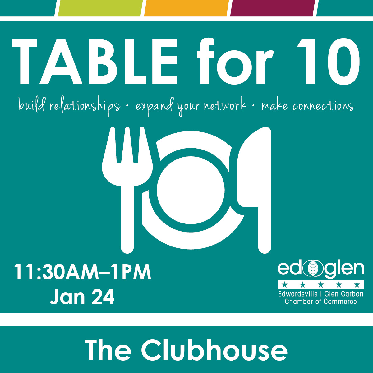 Table for 10 is a dynamic new initiative from the Ed/Glen Chamber designed to foster meaningful connections in a relaxed, mid-day setting. Participants will be encouraged to share professional insights, explore partnerships, and strengthen community ties. Whether you're looking to expand your professional circle or deepen existing relationships. Table for 10 provides the perfect platform to grow your business over delightful conversations and great food.