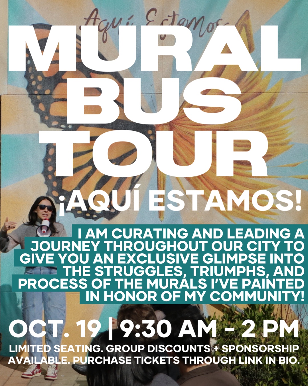 | 10/19/2025 | Mural Bus Tour by Yehimi Cambrón Álvarez On October 19th, Atlanta artist Yehimi Cambrón Álvarez is opening the doors to the narratives behind her murals through her first-ever public mural bus tour! In the past, she has been hosted by Agnes Scott College and Emory University to guide bus tours of her public art for their respective school community. This time, she is curating and leading her own journey throughout the city, with ticket sales open to the public! What You Get The tour includes travel by bus, a gift set with a commemorative postcard set and other goodies from my shop, and a specially crafted lunch at the Mercedes-Benz Stadium’s Home Depot Backyard by Atlanta’s award-winning Chef Arnaldo Castillo, Owner and Executive Chef of Tio Lucho’s. Tio Lucho’s is listed in Bon Appétit’s 11 Best Restaurants in Atlanta Right Now and The Atlanta Journal-Constitution's Atlanta's 50 Best Restaurants! Why This Tour Matters Right Now more info... |