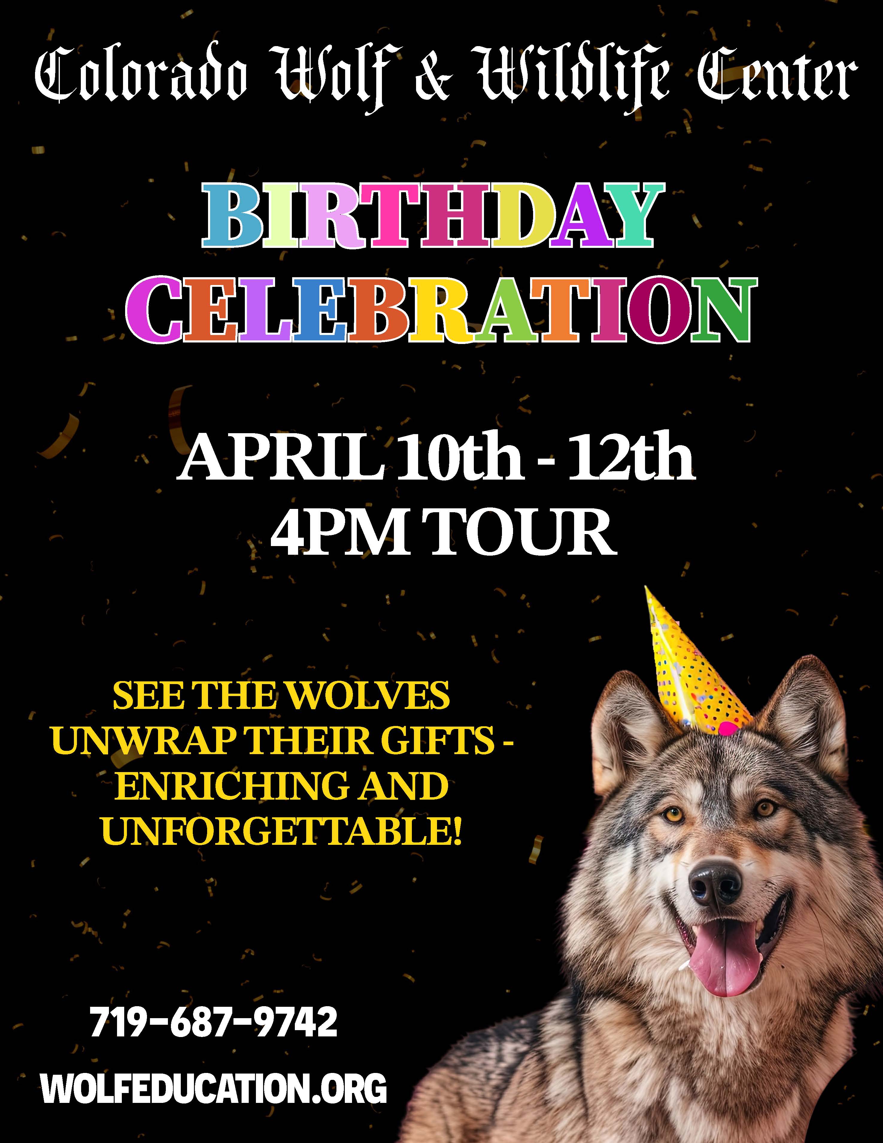 | 4/10/2026 | Come Celebrate the Wolves Birthday Celebration See the Wolves Unwrap Their Gifts Enriching and Unforgettable! more info... |