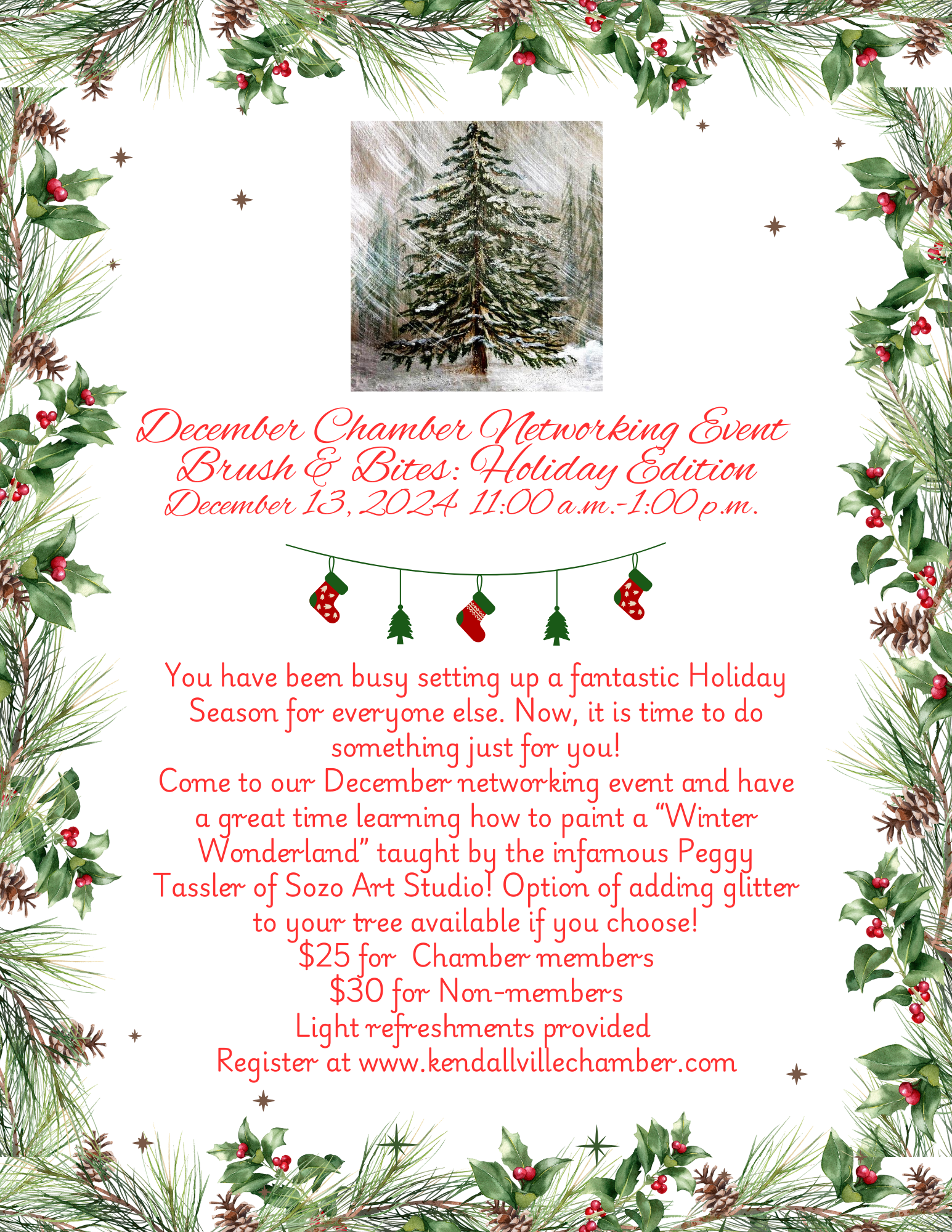 | 12/9/2024 | Two local sisters with a vision to bless 6 nursing homes in our community with special Christmas bags, our goal is to reach up to 500 residents this year (2024). We need lotion, shampoo, cream rinse, soft throws, razors, soft/extra fost tissues, body wash, Christmas cards, chap stick, adult sized bibs, tooth brushes, toothpaste, candy, warm fuzzy socks, pajamas. Drop off is at the Kendallville Area Chamber of Commerce; All supplies are due December 9th, 2024. more info... |