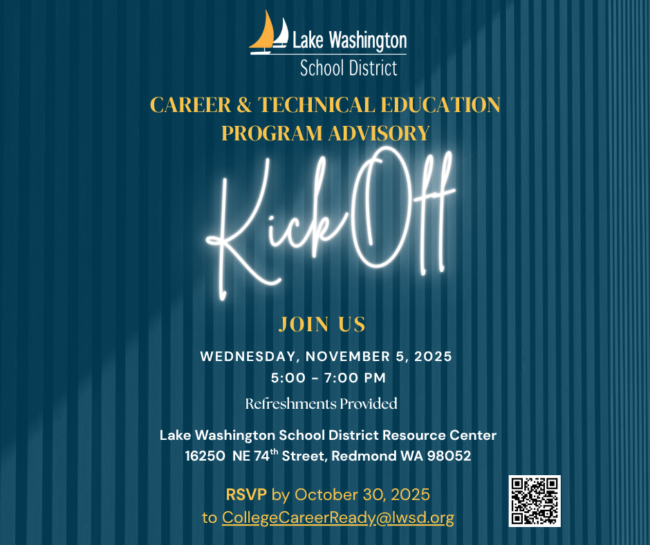 | 11/5/2025 | Join LWSD for our Career & Technical Education (CTE) Program Advisory Kickoff event! This is an opportunity for local businesses, industry professionals, and community members to collaborate with educators and help shape the future of workforce development in our schools. Why Attend?