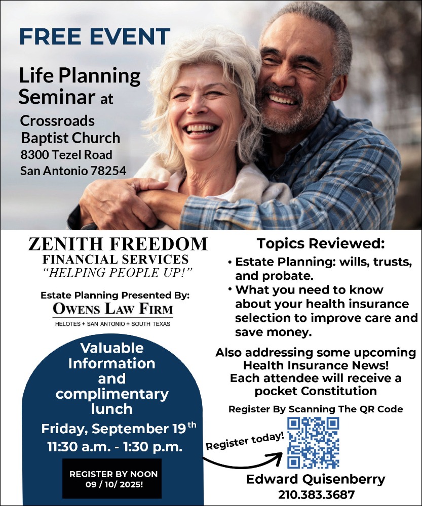 | 9/19/2025 | Join us for a FREE Luncheon & an opportunity to learn about both Financial Planning & Estate Planning at one time!!! Don't get lost in the flurry when you need Medicare or when a loved one passes!!! Save THOUSANDS (yes really) by planning ahead for you or your parents! more info... |