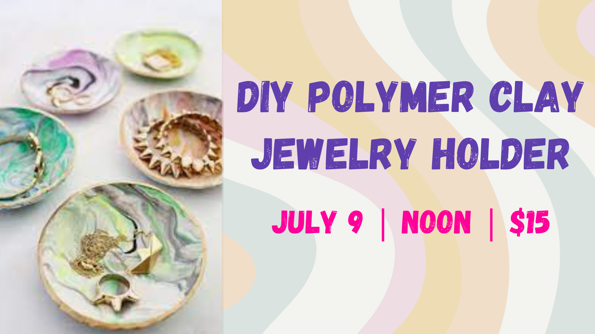 | 7/9/2025 | Join us on Wednesday, July 9th at Noon for a fun, hands-on class where you'll create your own custom polymer clay jewelry holder! In this class, you’ll learn how to condition, shape, and bake polymer clay to craft a stylish, functional piece—perfect for holding rings, earrings, and other small treasures. Cost: $15 (includes all materials) No experience necessary—just bring your creativity! All tools and supplies provided.โWhether you make it for yourself or as a gift, you’ll leave with something both beautiful and useful. Come craft with us and make something that’s 100% you! No need to preregister just drop-in for this fun class! more info... |