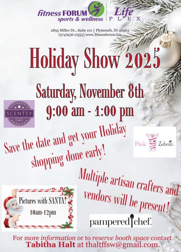 | 11/29/2025 | Come be a part of the Holiday Light Parade on Saturday, November 29, 2025 on Michigan Street in downtown Plymouth. The parade will start at 6:00 p.m. There are no participation fees to have an entry in the parade. Route will start at the corner of Michigan and Adams Street and continue south to Laporte Street and then east to River Park Square. All entries must be lit up in some way – either with Christmas lights, glow sticks, etc. After the parade arrives into River Park Square, Santa and Mayor Listenberger will officially kick off the Christmas season by lighting the City's Christmas Tree! There will be cookies and hot chocolate, music, and photos with Santa...all free of charge. If you would like to sign up to be a part of the parade, please fill out the form below or contact the Mayor's Office. more info... |