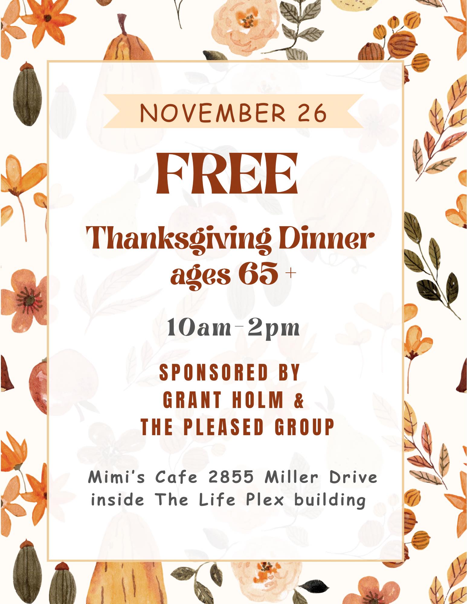 | 11/26/2025 | WEDNESDAY November 26! Everyone welcome! Plate cost for family members 10.95. Full menu served all day! Thanksgiving plates served 10am/2pm. more info... |
