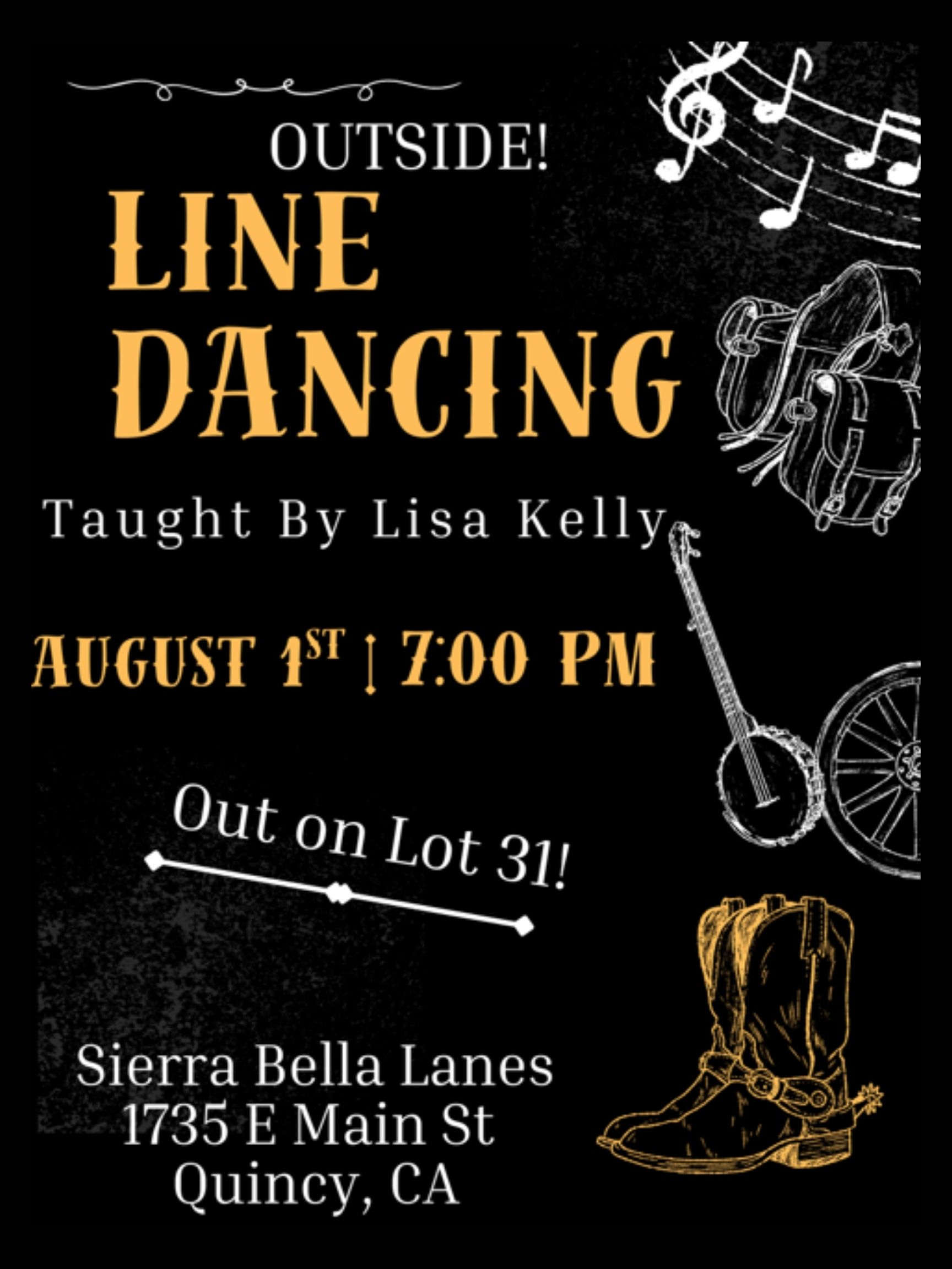 | 8/1/2025 | Come on by Sierra Bella Lanes' Lot 31 for line dancing fun on Friday, August 1st! The wonderful Lisa Kelly will be instructing. The fun begins at 7pm, you won't want to miss this! more info... |
