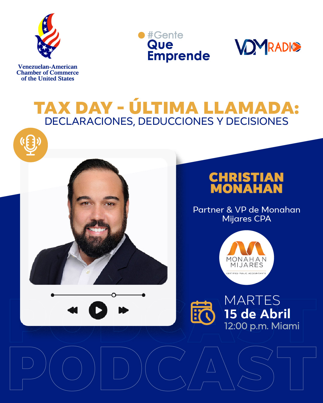 | 4/15/2025 | #GenteQueEmprende tiene como invitado especial esta semana a: Christian Monahan, Partner y VP de Monahan Mijares CPA @monahan_mijares_cpa