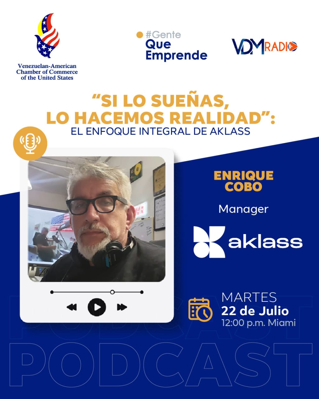 | 7/22/2025 | Esta semana en #GenteQueEmprende , conoceremos el proceso de planificación y producción de eventos corporativos de la mano de Enrique Cobo, Manager de Aklass Events .