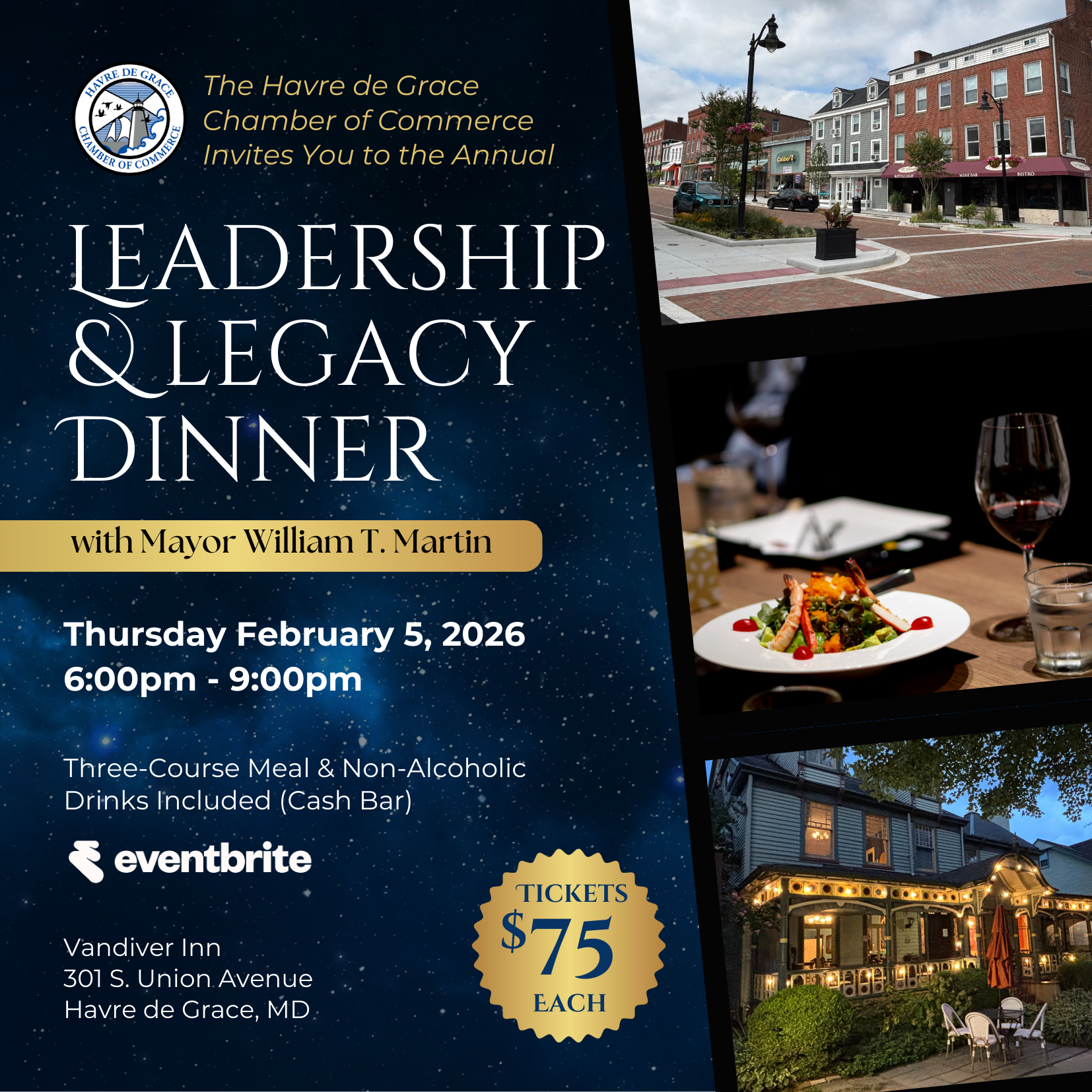 Join us for an engaging evening that honors Havre de Grace’s legacy—and the leadership guiding its future.