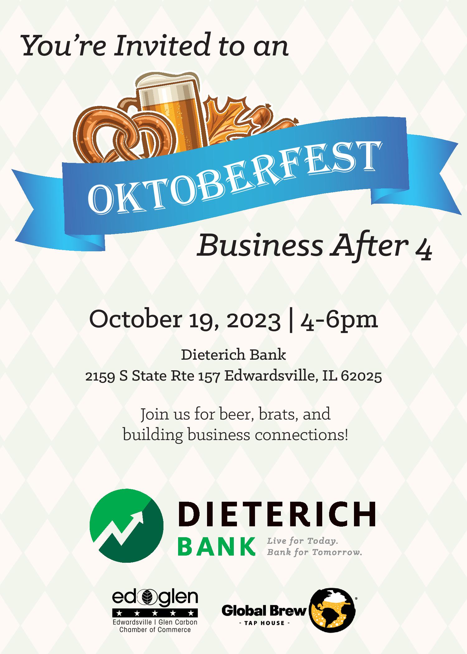 The October 2023 Business After 4 (BA4) is hosted by Dieterich Bank.