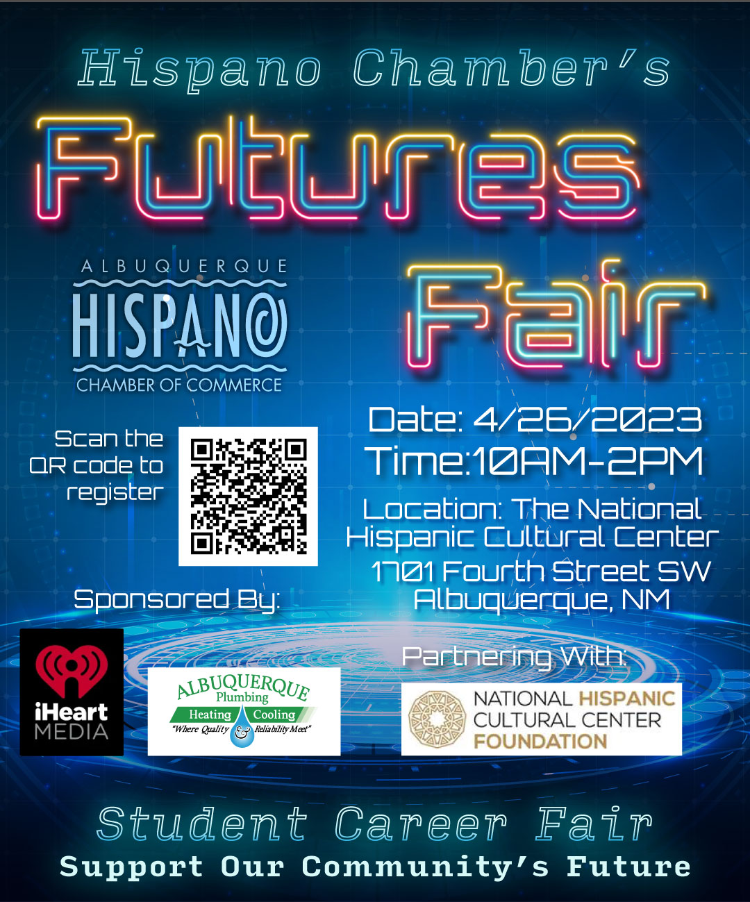 In partnership with The National Hispanic Cultural Center Foundation and sponsored by Albuquerque Plumbing, Heating, and Cooling, the Hispano Chamber will host a #FuturesFair, an untraditional career fair for high school juniors and seniors.