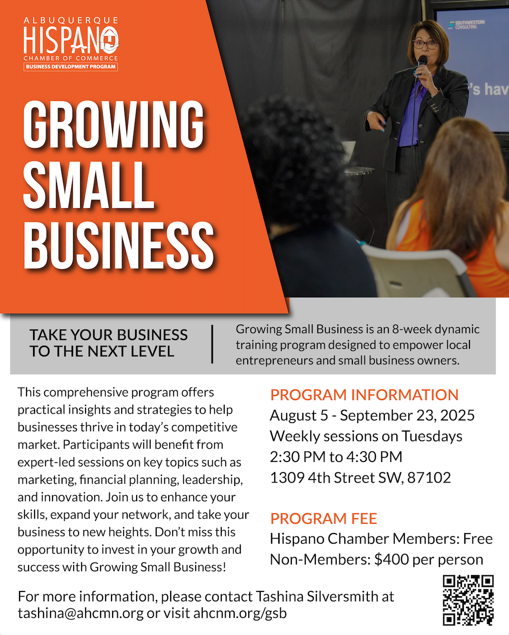Register Growing Small Business (GSB), a dynamic training program designed to empower local entrepreneurs and small business owners. This comprehensive program offers practical insights and strategies to help businesses thrive in today’s competitive market. Participants will benefit from expert-led sessions on key topics such as marketing, financial planning, leadership, and innovation. Join us to enhance your skills, expand your network, and take your business to new heights. Don’t miss this opportunity to invest in your growth and success with Growing Small Business! Register online at www.ahcnm.org/GSB.