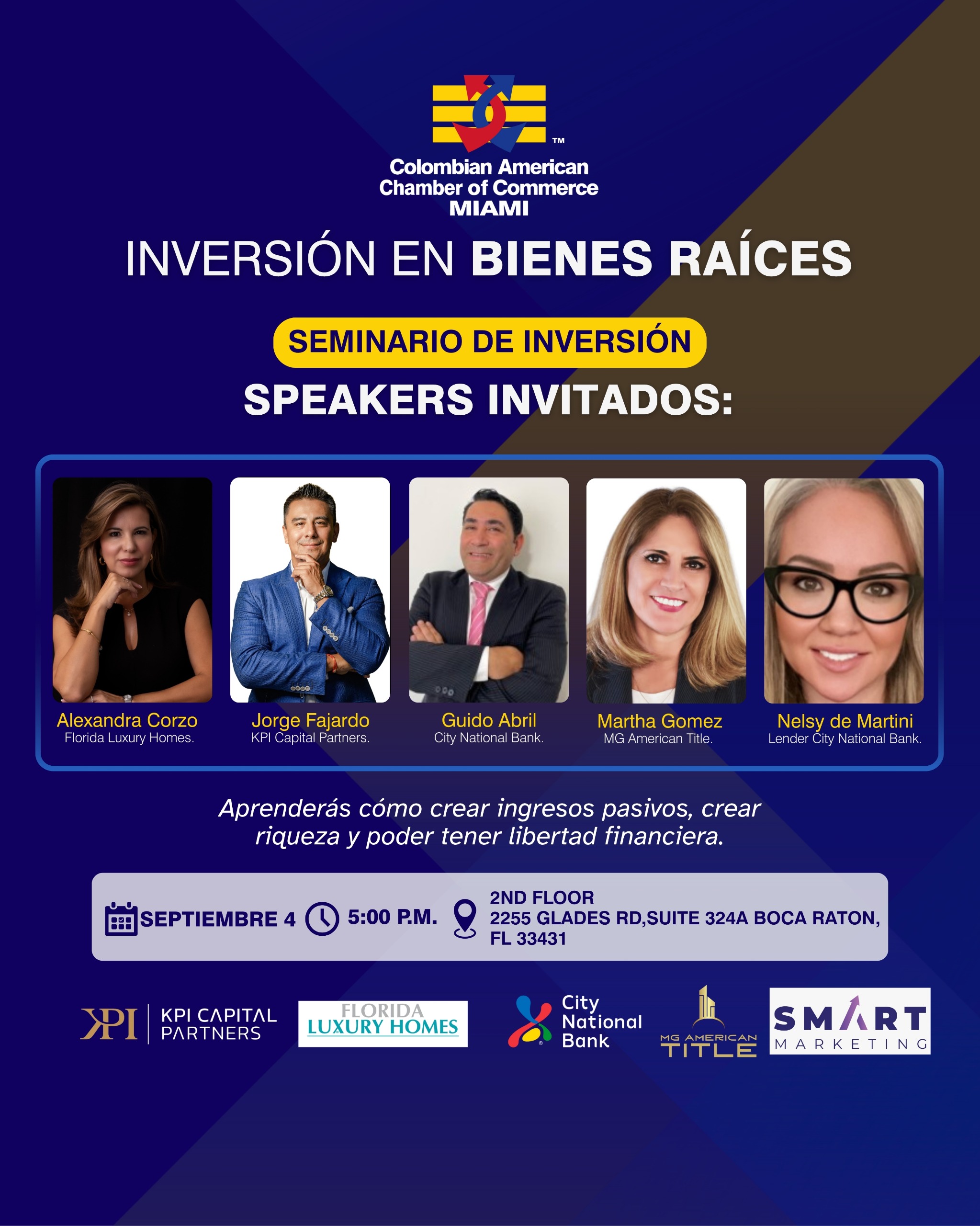 Este 4 de septiembre acompáñanos en un seminario exclusivo sobre inversión en bienes raíces, donde aprenderás a generar ingresos pasivos, construir riqueza y alcanzar libertad financiera.