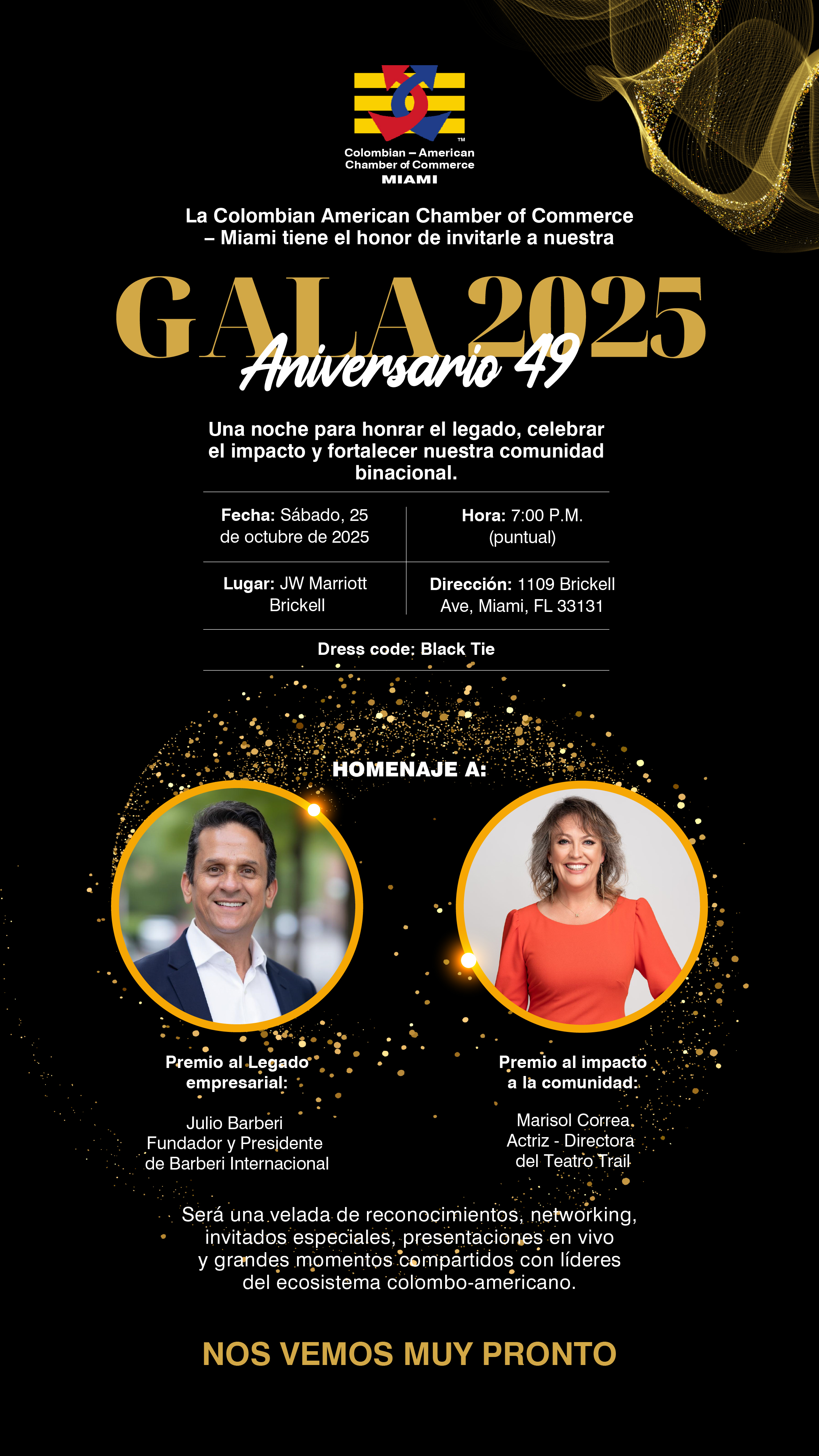 Será una velada de reconocimientos, networking, invitados especiales, presentaciones en vivo y grandes momentos compartidos con líderes del ecosistema colombo-americano.