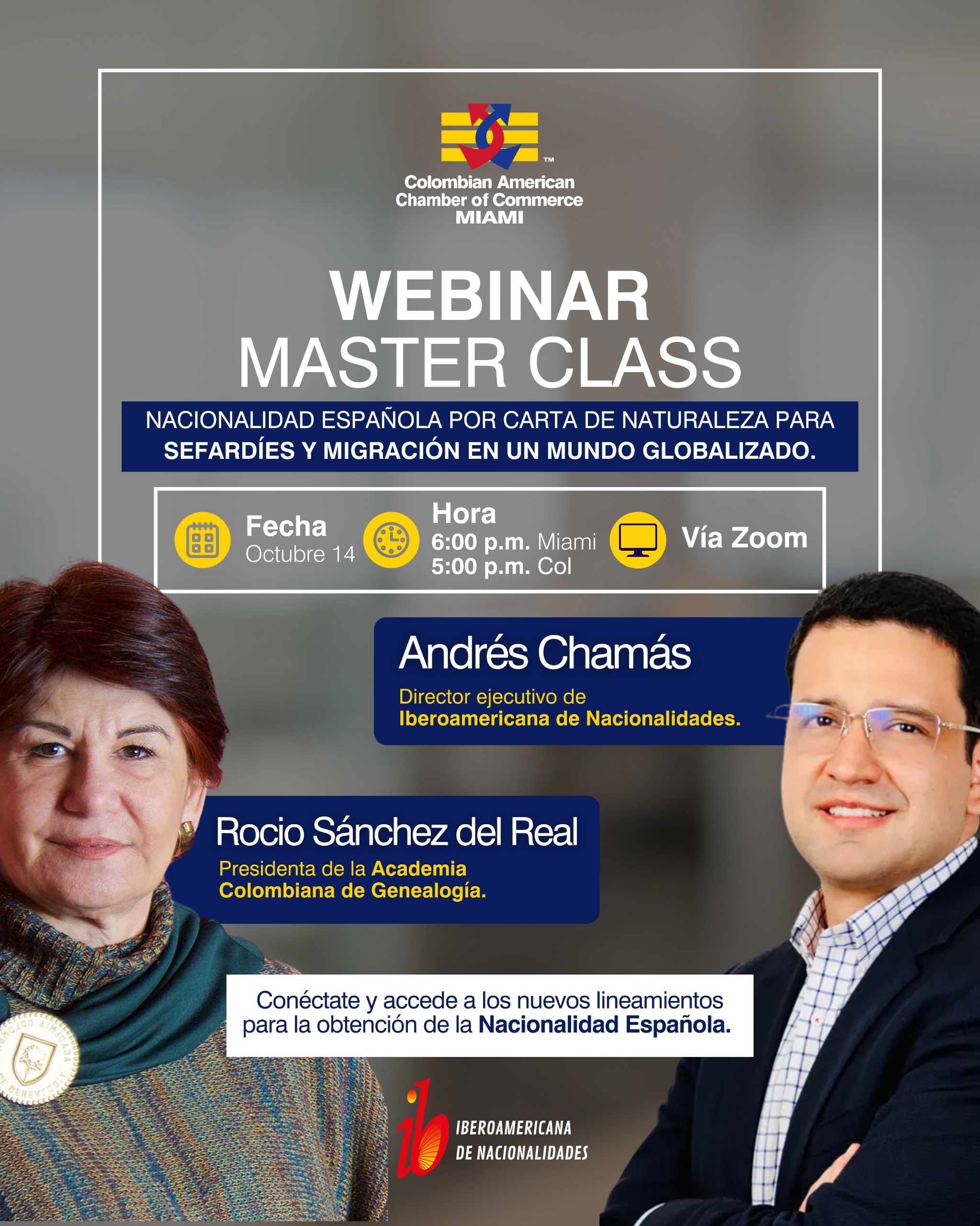 Este 14 de octubre, acompáñanos en un webinar exclusivo con Andrés Chamás, Director Ejecutivo de Iberoamericana de Nacionalidades, y descubre los nuevos lineamientos para la obtención de la nacionalidad (española) por carta de naturaleza para sefardíes.