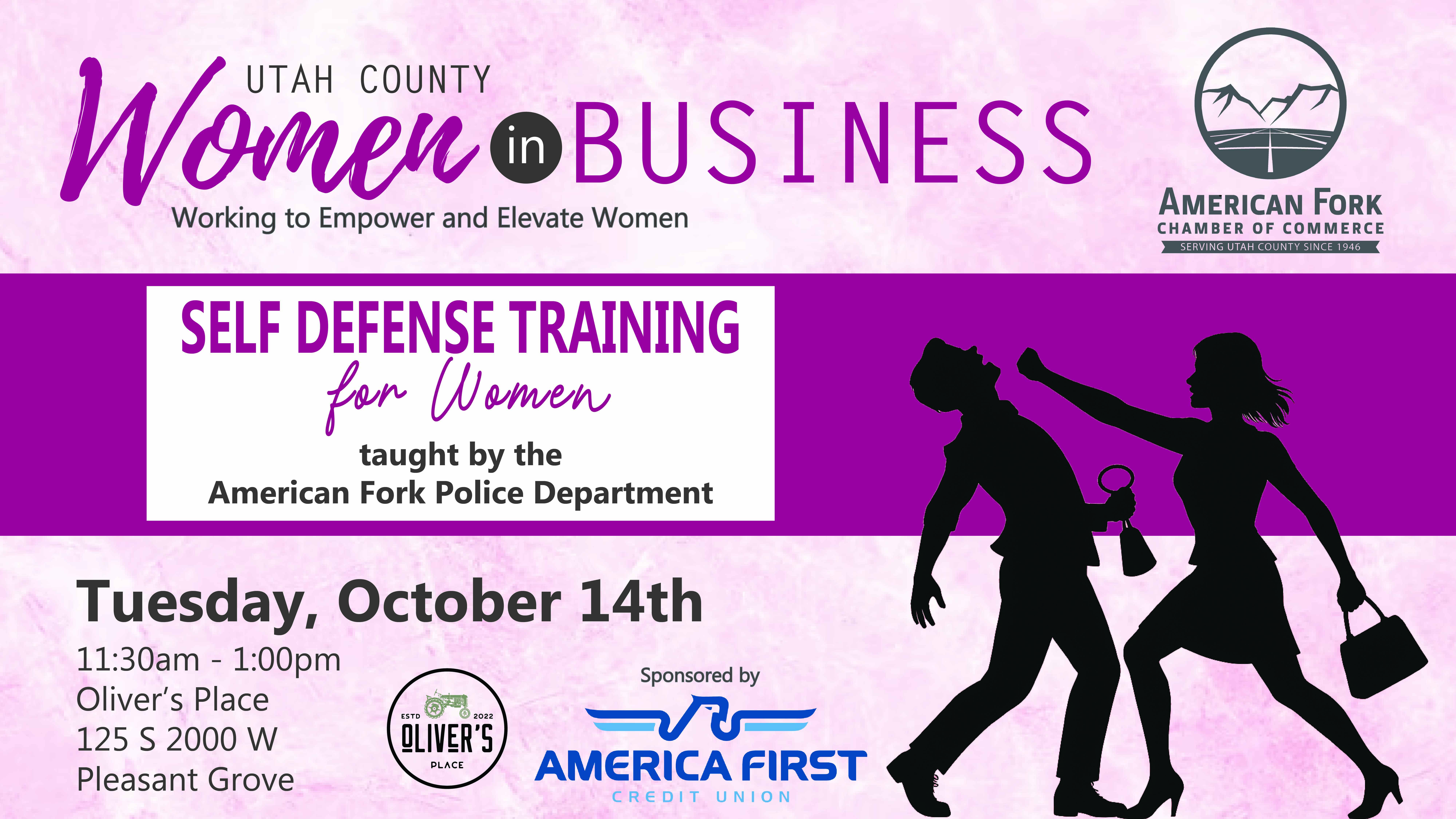 This event is a great opportunity to learn valuable personal safety and self-defense skills. Enjoy a delicious lunch at Oliver's Place while networking with other women professionals, entrepreneurs, and community leaders. Special thanks to our sponsor, America First Credit Union, for helping make this event possible.