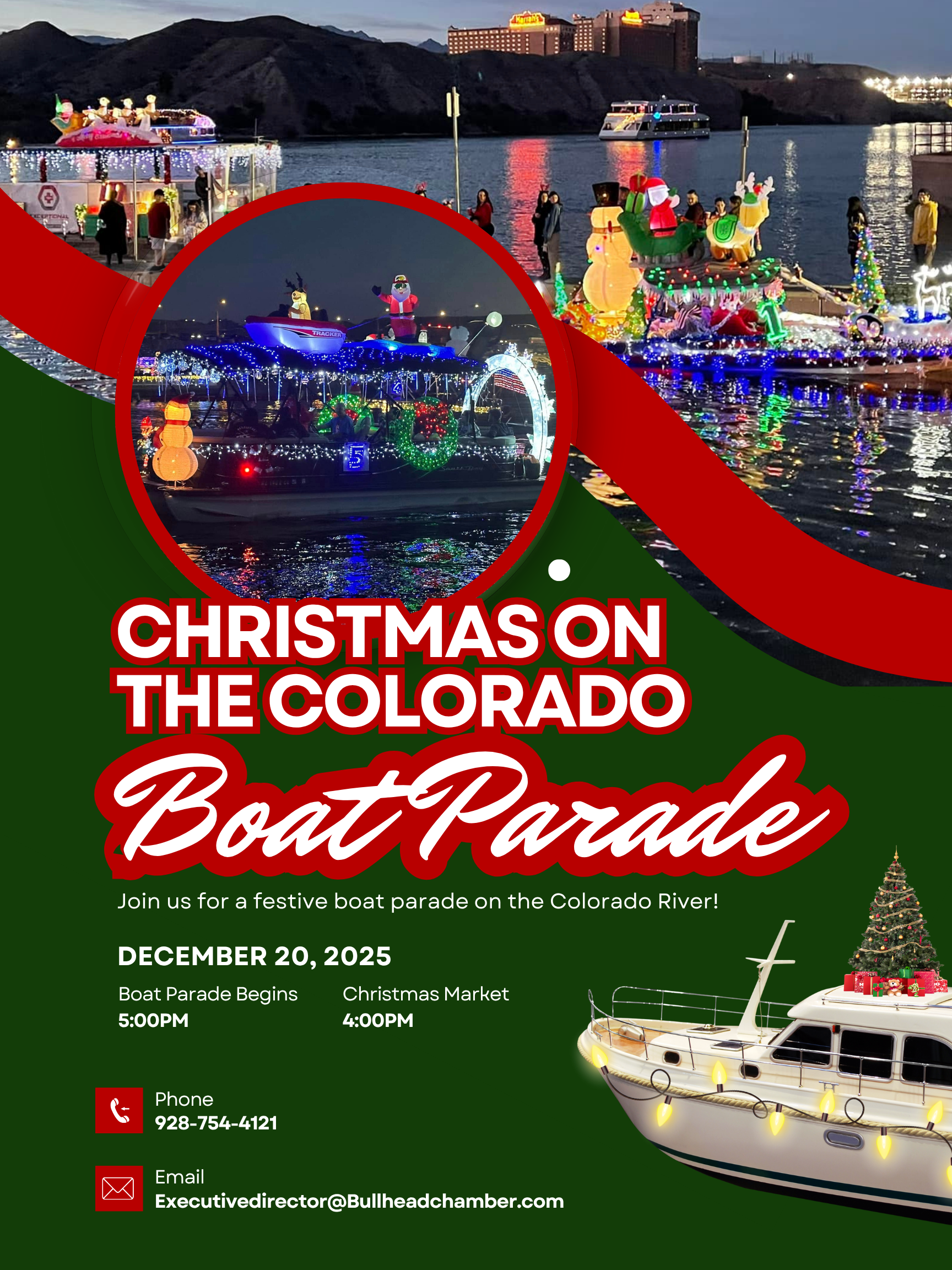Get ready for a magical night on the water! Join us Friday, December 20th at 5:00 PM as boats light up the Colorado River in holiday style. 🌊🎅