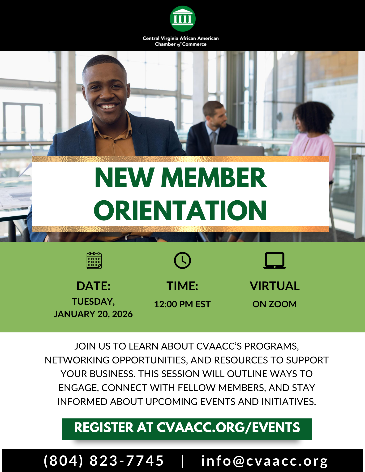 Join us to learn about CVAACC’s programs, networking opportunities, and resources to support your business. This session will outline ways to engage, connect with fellow members, and stay informed about upcoming events and initiatives.