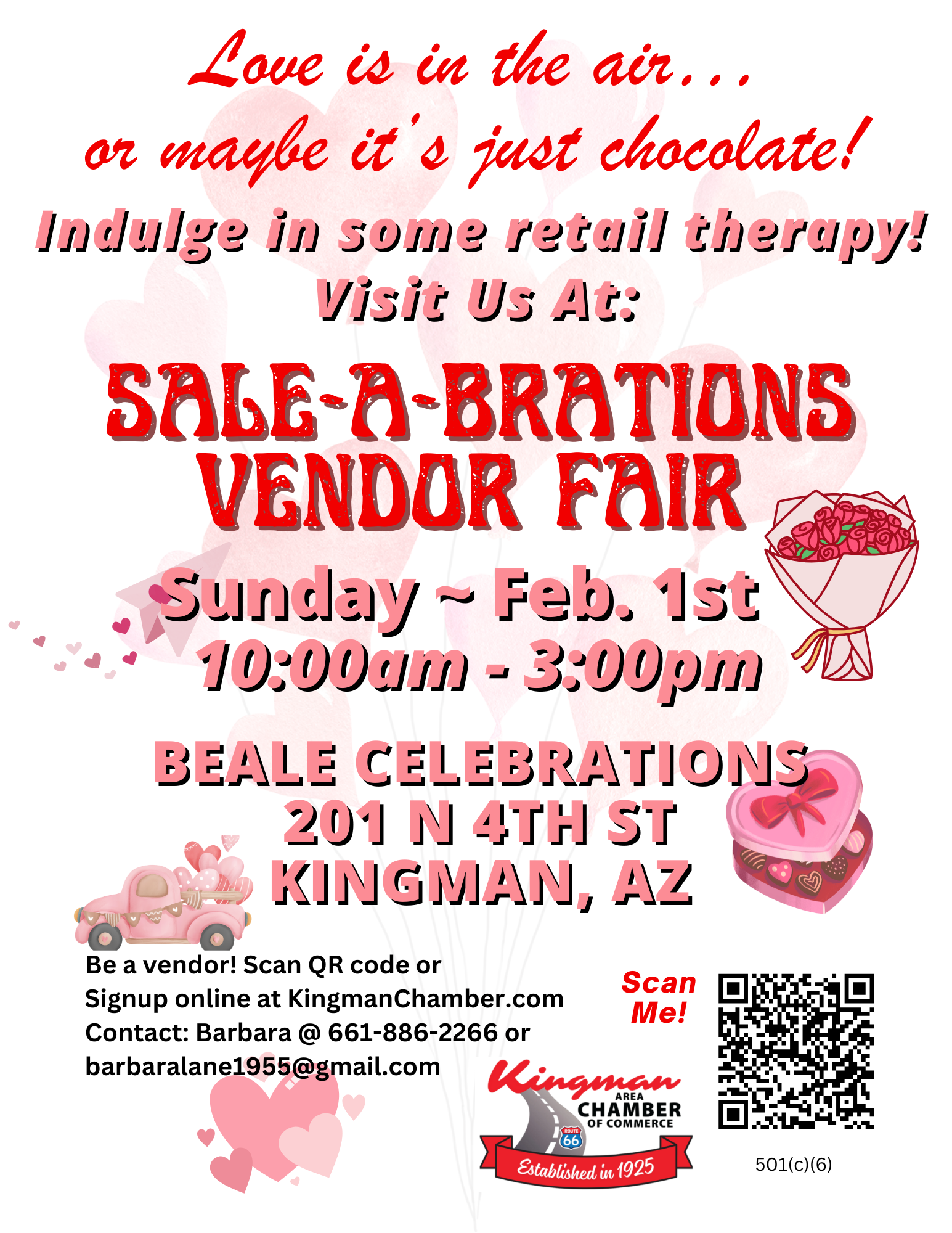 Sale-A-Brations is where creativity meets community and your products get the spotlight they deserve! Hosted by the Kingman Area Chamber of Commerce, this indoor vendor fair brings together shoppers who are eager to support local, discover unique finds, and connect directly with the people behind the products.