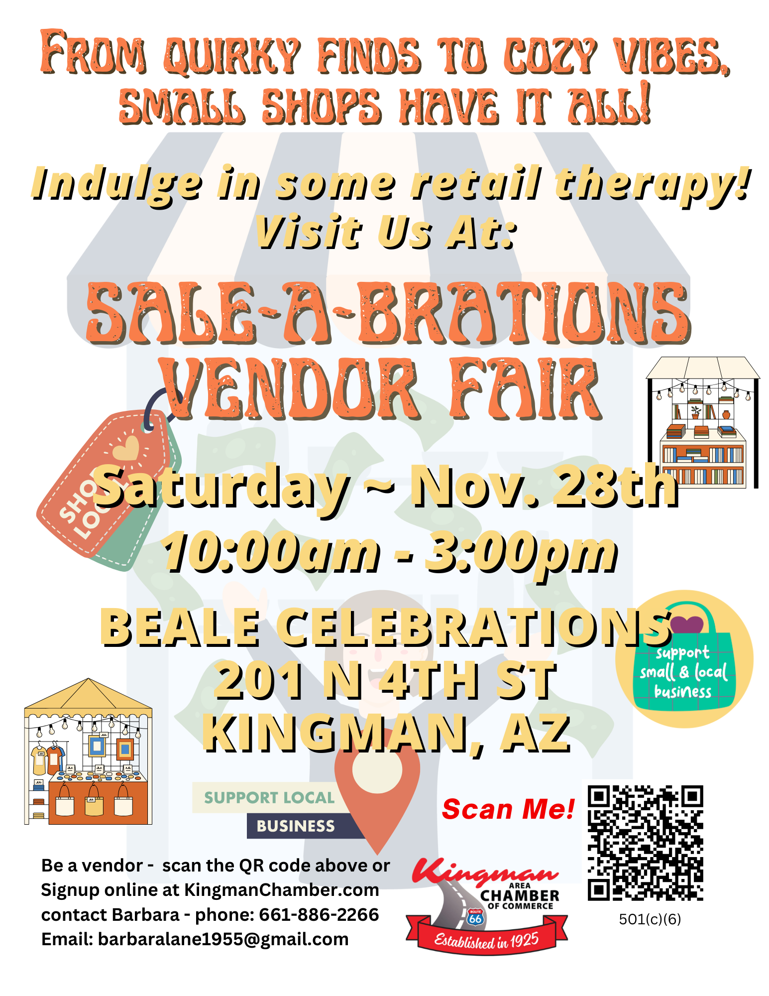 Sale-A-Brations is where creativity meets community and your products get the spotlight they deserve! Hosted by the Kingman Area Chamber of Commerce, this indoor vendor fair brings together shoppers who are eager to support local, discover unique finds, and connect directly with the people behind the products.