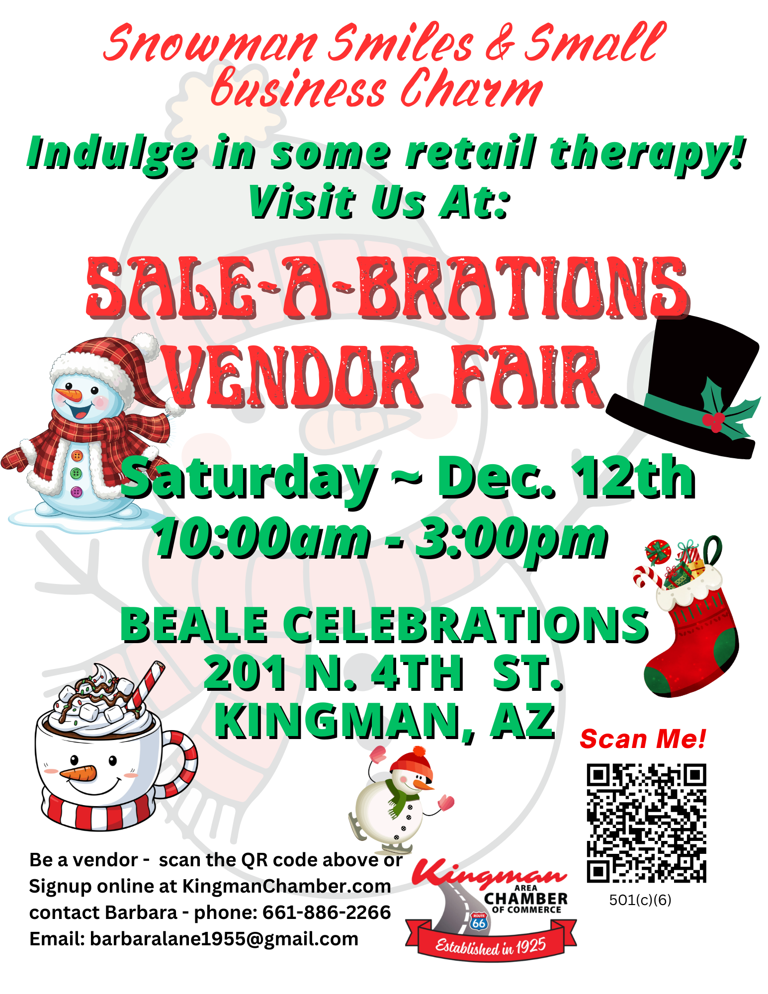 Sale-A-Brations is where creativity meets community and your products get the spotlight they deserve! Hosted by the Kingman Area Chamber of Commerce, this indoor vendor fair brings together shoppers who are eager to support local, discover unique finds, and connect directly with the people behind the products.