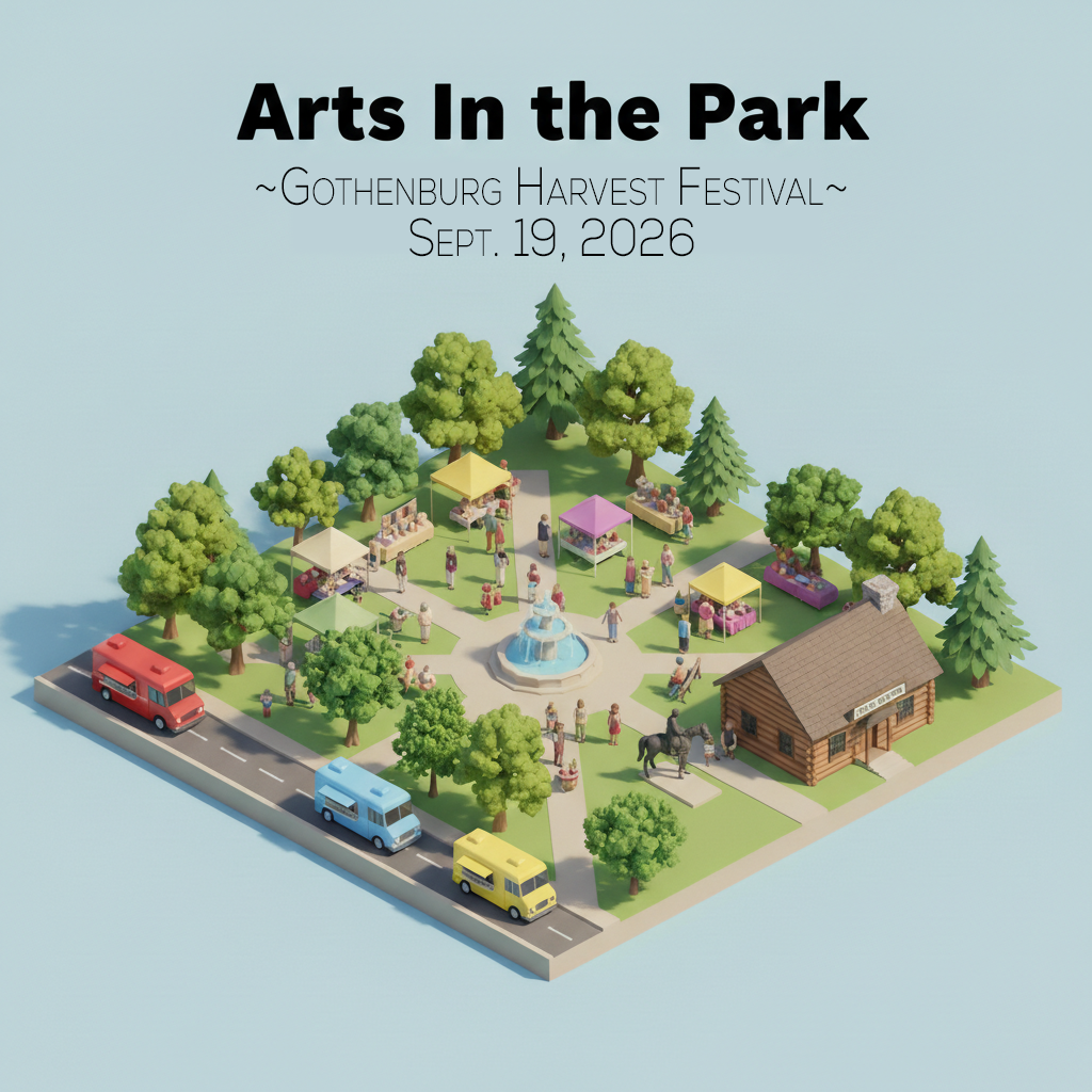 The Gothenburg Chamber of Commerce hosts Arts in the Park during the annual Harvest Festival celebration in September. Ehmen Park is a beautiful, shady city block ... a great place to peddle all kinds of goods. The event is open to home-based businesses, arts & crafts, food trucks, etc. We're always looking for something new!!
