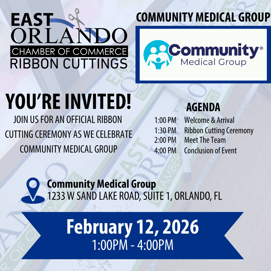 Join the East Orlando Chamber of Commerce as we celebrate the official ribbon cutting of Community Medical Group!